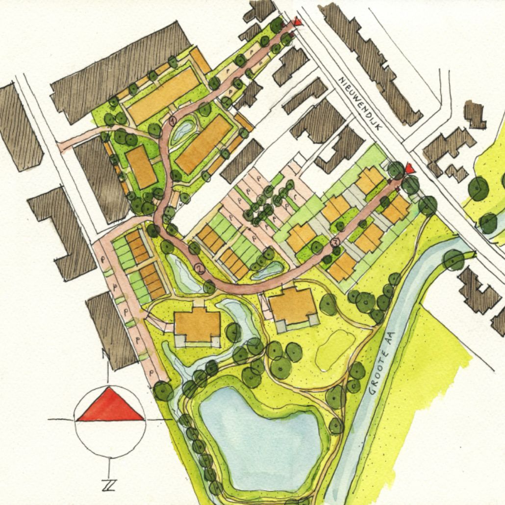 Ook de aangrenzende natuur van de Groote Aa wordt ingericht als park met bomen, bloeiende heesters en wandelpaden die de natuur direct verbindt met het nieuwe Wilhelminapark. Dat wordt heerlijk wandelen, hardlopen of fietsen, direct vanuit uw nieuwe woning.